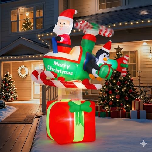 7FT Christmas Inflatables Decorations, Outdoor Santa Helicopter Decoration, Giant Blow Up with with Built-in LED Lights for Yard Garden Lawn Holiday Decor