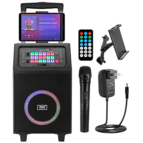 Pyle Portable Karaoke PA Speaker System - 600W 8” Rechargeable BT Speaker, TWS, Party Lights, LED Display, FM/AUX/MP3/USB/SD, Wheels - Wireless Mic, Remote Control, Tablet Holder Included - PHP18DJT