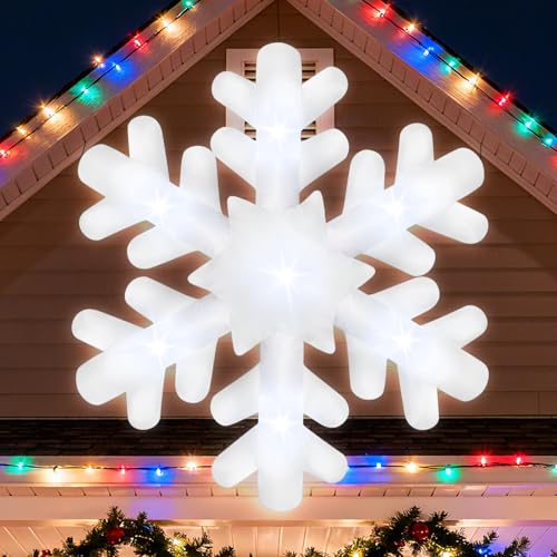 6FT Christmas Hanging Inflatable Snowflake Giant Blow Up Snowflake Ornaments Built-in 7 LED Lights for Christmas Inflatables Outdoor Decorations Winter Xmas Party Supplies Window Roof Wall Yard