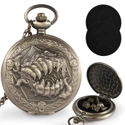 Kabinka D&D Dice Set with Pocket Watch Shell, 7-Piece Polyhedral Dice Set, Perfect for Dungeons and Dragons RPG