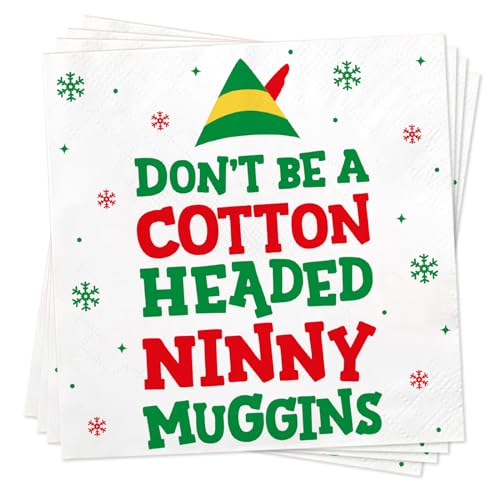 Funny Elf Christmas Cocktail Napkins, 50 Pack Christmas Paper Napkins, Buddy The Elf Merch Party Decor Supplies, Holiday Home Table Dinnerware Decorations, White Elephant Gifts Stocking Stuffer