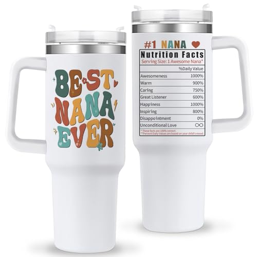 TIKMODERN Nana Tumbler with Handle Nanas Gifts from Grandkids Best Nana Ever 40oz Tumbler with Straw Lid Nanas Gifts for Grandmas Christmas Mothers Day Present