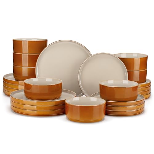 vancasso ONION Ceramic Plates and Bowls Sets, 24 Pieces Grey Dinnerware Sets for Kitchen, Reactive Glaze Dishes Set for 8, Dishwasher and Microwave Safe