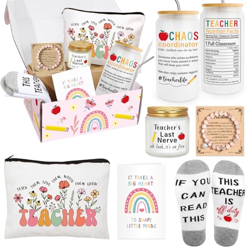 iAOVUEBY Teacher Appreciation Gifts for Women, Gifts for Teachers, Best Teacher Gift, Chaos Coordinator Thank You Gift for Women Teachers w 16oz Glass Cup