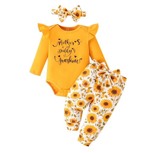 GDTOGRT Newborn Baby Girl Clothes Outfit Set Sweet Ruffle Romper, Pants and Headband 3-6 Months Infant Clothing Yellow