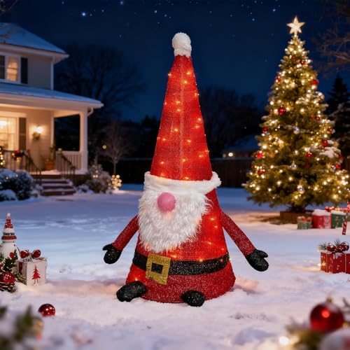 Christmas Gnome Lighted Decorations, 37 Inch Pop Up Elf Santa Claus Pre-Lit 50 LED Warm White LED Lights Ornaments Decor for Home Outdoor Indoor Yard Garden Lawn Patio Porch, Red