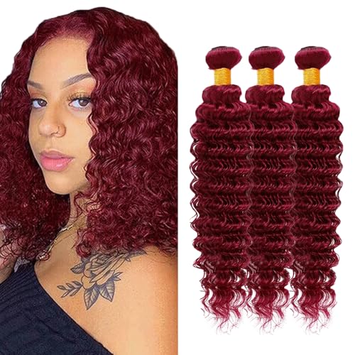 Burgundy Bundles Human Hair 99J Bundles Red Deep Wave Bundle 12 14 16 inch Burgundy Deep Wave Bundle 99j Red Color
