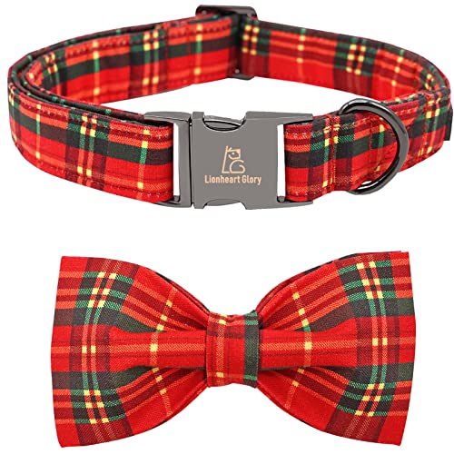Lionheart Plaid Dog Collar - Adjustable Bow Tie Collar for Large Dogs for Girl or Boy Dogs