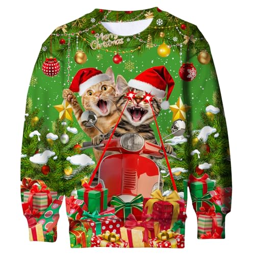 BFUSTYLE Kids Ugly Christmas Sweater 6 7 Years Old Toddler Boys Girls Alpaca Ugly Christmas Cat Green Pull on Sweatshirt for Boy Girl