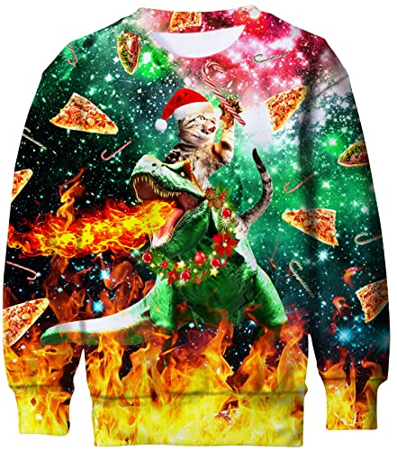 BFUSTYLE Size 13-16 Youth Sweatshirts Pullover Blue Green Rainbow Crewneck Christmas Cat Pizza Light Strings Long Sleeve Casual Xmas Kitty 3D Print Jumper for Boys Girls