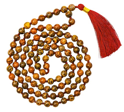 Amazing Gemstone Leopard Jasper Mala Beads - 108 Prayer Beads for Meditation and Mindfulness Practice, Handcrafted Mala Beads with Natural Gemstones for Spiritual Healing and Relaxation (Knotted)