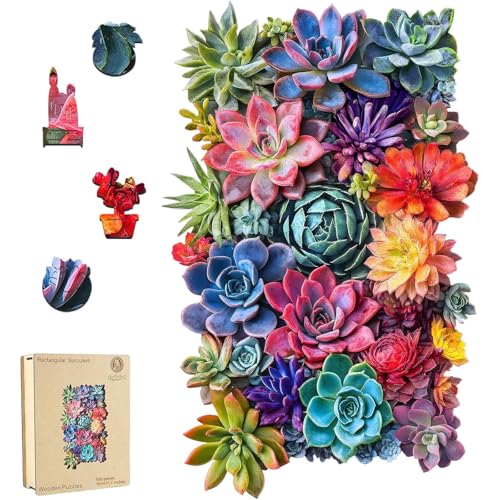 Delobil Rectangular Succulent Wooden Puzzles,500 Pieces Jigsaw Puzzles 18.5'' x11.7'', Unique Design Wooden Puzzles for Adults and Kids, Family Game Gift Royal Size