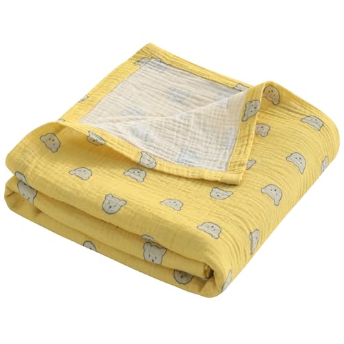 NTBAY 2 Layer Muslin Cotton Baby Swaddle Blanket, 42x60 Soft and Breathable Receiving for Newborns and Infants, Perfect for Crib, Stroller, Travel, Lightweight Nursery Blanket, Honey Bear