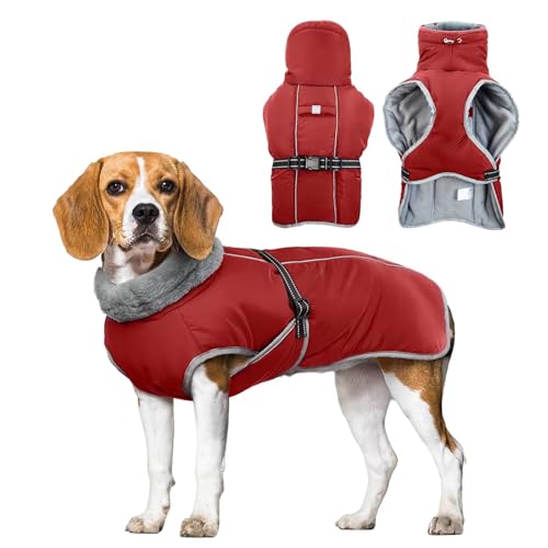 AuraPaw Dog Winter Jackets for Large Dogs,Size L Warm Pet Coat with Leash Hole,Waterproof Dogs Snowsuits Warm Pet Jacket Fleece Cold Weather Coats Reflective Puppy Vest,Dog Cold Weather Coats,Red,L