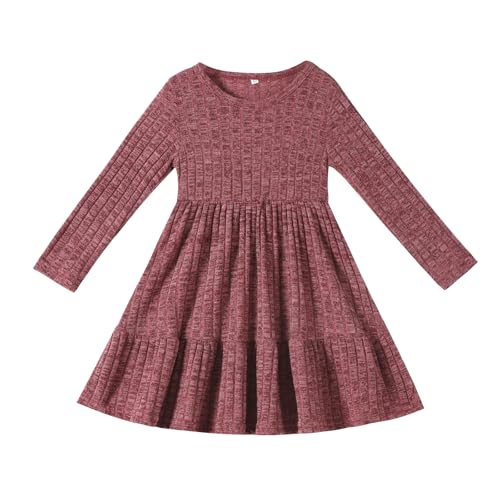 Kionio Toddler Baby Girl Long Sleeve Dress Girls Knit Sweater Dresses Tiered Kids Swing Holiday Clothes Fall Winter