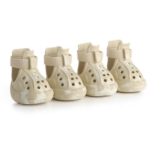 AOKOWN Dog Shoes for Hot Summer Pavement, Dog Shoes for Large Dogs, Waterproof Dog Boots & Paw Protectors, Non-Slip Dog Rain Booties, Easy Clean Sandals for Beach Khaki Size 10