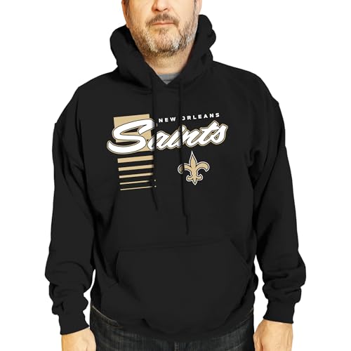 Team Fan Apparel NFL Adult Unisex Retro Script Ultra Soft Fleece Hooded Sweatshirt, Officially Licensed Football Performance Hoodie (New Orleans Saints - Black, Small)