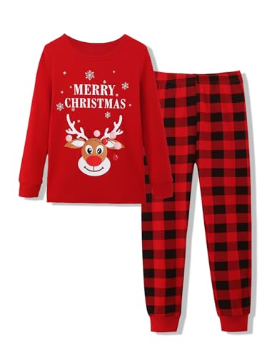 Mikrdoo Girls Pajamas Little Kids Fashion Cute Cotton Pajamas 2 Piece Fall Pjs Set Long Sleeve Red Christmas Elk Girls' Sleepwear Size 4