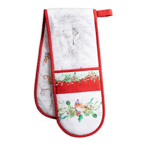 Maison d' Hermine Double Oven Mitt (7" x 35") 100% Cotton Heat Resistant BBQ Cooking Gloves with Loop for Thanksgiving Christmas Decorations Baking Cooking Handling Hot Pan (Christmas Tradition)