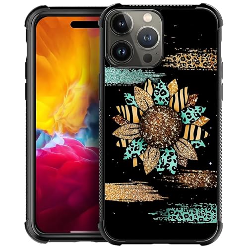 CARLOCA Compatible with iPhone 15 Pro Max Case,Shiny Sunflower Leopard Cases for Girl Fashion Graphic Design Shockproof Anti-Scratch Drop Protection Case for iPhone 15 Pro Max