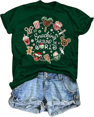 Christmas Shirt for Women Magical Holiday Short Sleeve Tee Xmas Tree Castle Graphic Snowflake Lights Print Gift