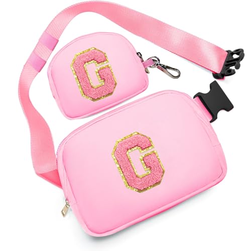 Birthday Gifts for 4 5 6 7 8 9 10 11 12 13 Year Old Girls, Crossbody Bags Fanny Pack with Initial Letter Patch Cute Stuff for Women Girls Teens (G, Pink)