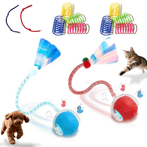 Petayouj Interactive Cat Toys Ball for Indoor Cats,Automatic Cat Toy with Elastic Mesh Tail,Rechargeable Rolling Kitten Toy,Cat Enrichment Toys for Indoor Cats (RedBlue1, Cat Toy Ball)