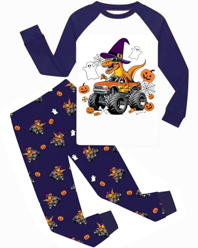 Demifill Boys&Girls Cotton Pajamas Halloween Dinosaur Pajamas Halloween Truck Clothes Costumes Sleepwear 3T White&Blue