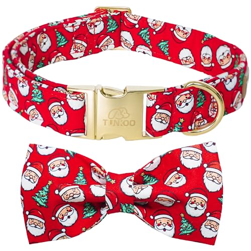 Tunkoo Christmas Dog Collar with Super Cute Bow Tie Santa Claus Puppy Collars, Adjustable Size Small Medium Large for Girls Boys Dogs, M