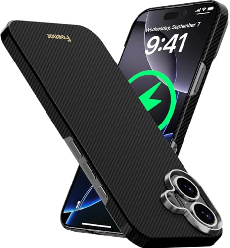 Foenor Aramid Fiber for iPhone 17 Case, Compatible with MagSafe, Ultra Thin & Lightweight Case for iPhone 17, Kevlar 600D Aramid Fiber with Ultra-Slim Caseless Feel Black/Grey (Twill)