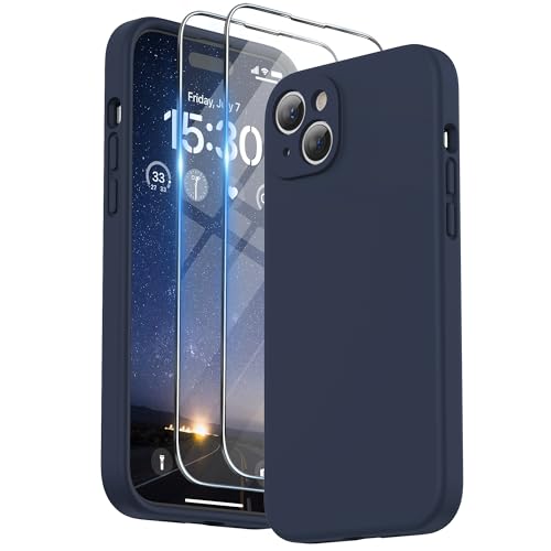 SURPHY Designed for iPhone 15 Plus Case with Screen Protector and Lanyard, Phone Strap and Liquid Silicone Phone Case (Camera Protective & Soft Microfiber Lining) 6.7 inch 2023, Midnight Blue