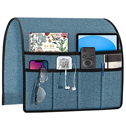 Joywell Remote Holder for Couch Non Slip Sofa Armrest Organizer Armchair Caddy with 6 Pocket Storage for Magazine, Tablet, Phone, iPad, Grey-Blue