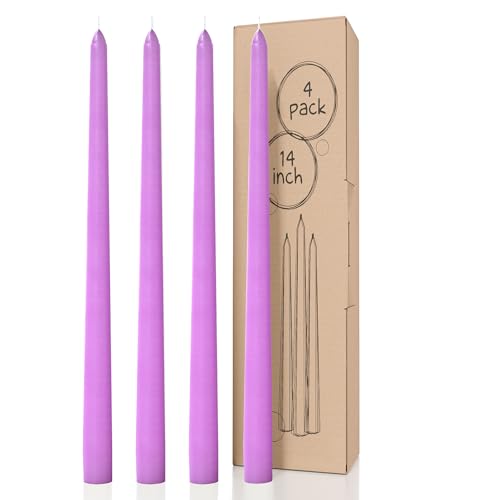 CANDWAX Lavender Taper Candles 14 inch Dripless - Set of 4 Tapered Candles - Smokeless and Unscented Tall Candlesticks