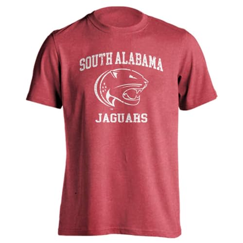Sport Your Gear South Alabama Jaguars Officially Licensed Distressed Retro Logo T-Shirt Game Day Tee Spirit Wear Fan Gear Apparel Red Heather Small