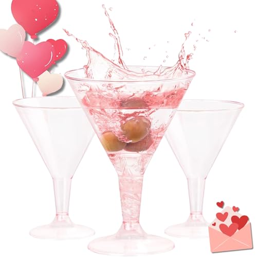 Liacere 24 Pack Pink Plastic Martini Glasses 6.25oz Disposable Cocktail Glasses Margarita Glasses Plastic Cocktail Glasses Perfect for Wedding & Party & Birthday & Mother's Day & Valentine’s Day