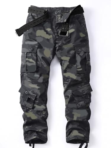 AKHIKING Men's Camo Cargo Work Pants Ripstop Lightweight Wild Army Military BDU Outdoor Trousers with 8 Pocktets (No Belt) 28