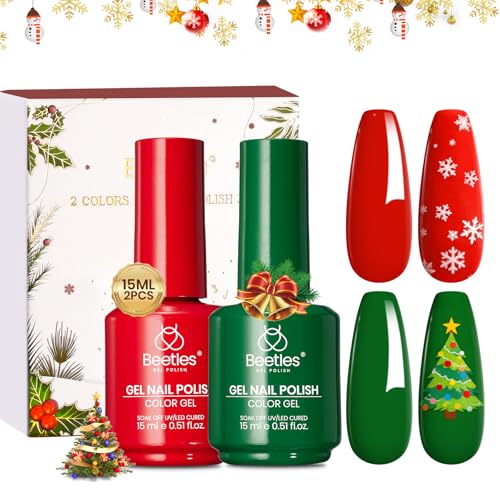 Beetles Christmas Gel Nail Polish Set Red Green Gel Polish Classic Winter Colors Soak off UV Led Lamp Needed Manicure Salon DIY Home Gifts for Women Girls Prelude of Celebration