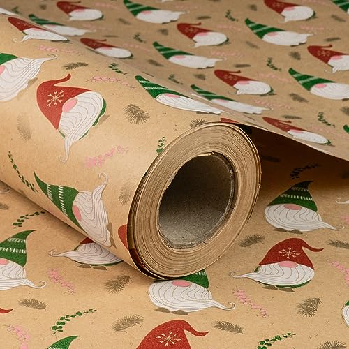 RUSPEPA Christmas Wrapping Paper, Jumbo Roll Kraft Paper - Gnome Design for Holiday Gift Wrap - 30 Inches x 100 Feet