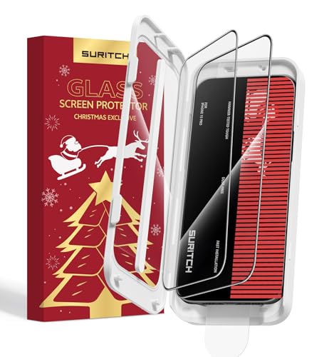 SURITCH 2-Pack for iPhone 15 Pro Tempered Glass Screen Protector, 9H+ Hardness, HD Clear, Fingerprint Resistant, Military-grade Shatterproof Tempered Glass Film with Installation Tool for Christmas