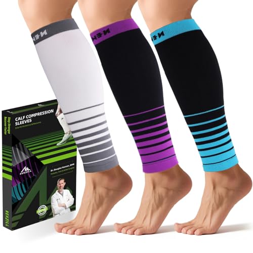 NEWZILL Calf Compression Sleeve for Men & Women | Footless Compression Socks for Shin Splint Relief, Varicose Veins | Leg Sleeve for Running, Travel, Nursing, Fitness (XXL Grey/Blue/Purple 3Pairs)