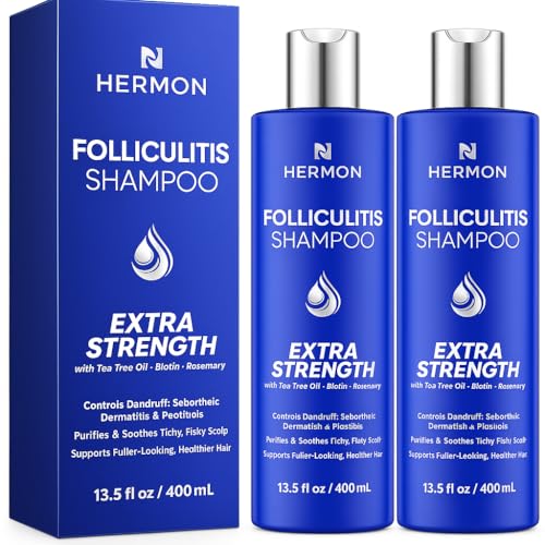 Hermon Folliculitis Shampoo for Itchy Scalp: Psoriasis, Dandruff & Seborrheic Dermatitis & Biotin – Soothes | Exfoliates | Reactivates Follicles 2 Packs