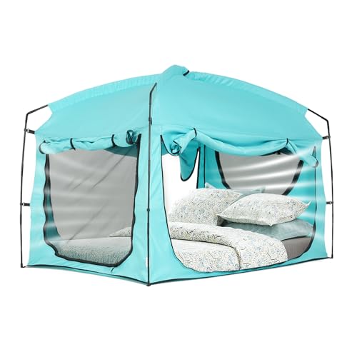 Bed Tent,Portable Privacy Sleeping Bed Canopy,Blackout 90% Drapes for Kids and Adult,Twin Size Indoor Space Tent with Breathable Large Mesh Windows (Teal, Twin)