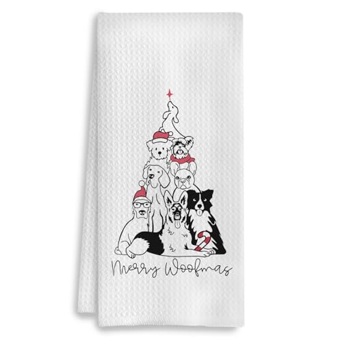 COWEB Funny Christmas Dog Kitchen Towels - 16x24 Inches, Gifts for Dog Lovers, Christmas Decor