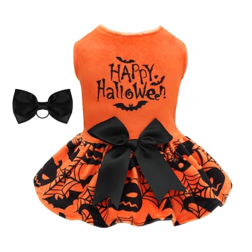 CuteBone Halloween Dog Dresses Velvet Holiday Small Dogs Clothes Onesie Pet Apparel Girl Puppy Skirt with Bow Hair Rope CVA57M-D