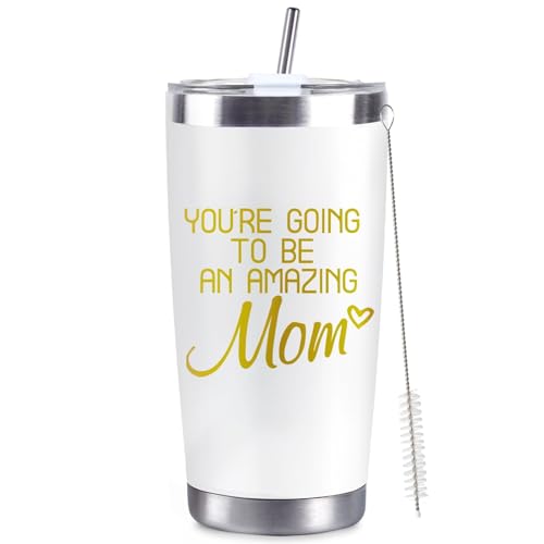 CUPLOOV New Mom Gifts For Women First Time Mom Christmas Gifts for Expecting to be Mother 20oz White Insulated Stainless Steel Tumbler Mother’s Day Birthday Baby Showers Gender Reveals Presents