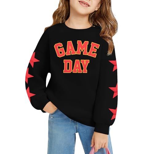 Yawtaut Game Day Sweatshirt Girls Boys Football Fan Pullover Kids Long Sleeve Oversized Tops Football Season Clothes 5-14Y Black