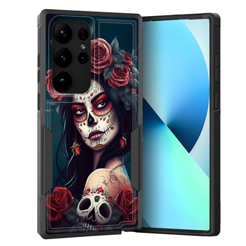 KJFHDJFDH for Galaxy S25 Ultra Case,Dual Layer Hybrid Heavy Duty Rugged Shockproof Hard PC +Soft Silicone Protective Case for Samsung Galaxy S25 Ultra 6.9 inch,Skull Rose Girl