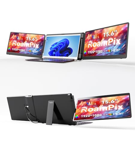 RoamPix 15.6" Laptop Screen Extender, 1080P FHD IPS Portable Monitor, Plug and Play, Triple Portable Laptop Monitor for 13-17" Laptops with USB-C/HDMI, for Wins/MacOS(M1//M2/M3Pro/Max).