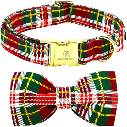 Lionheart glory Dog Bow Collar Christmas Plaid Dog Collar for Large Dogs, Adjustable Soft Comfortable Sturdy Collars with Bowtie Pet Collar Bows Cute Collars