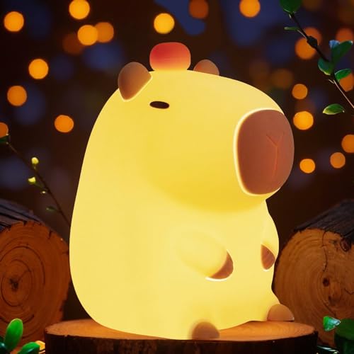 Bestfaith Cute Tangerine Capybara Night Light, LED Squishy Night Lamp, 2 Levels Dimmable Nursery Nightlight for Kids, Rechargeable Touch Lamp, Dorm Decor, Kids Funny Gifts (Fixed Tangerine)